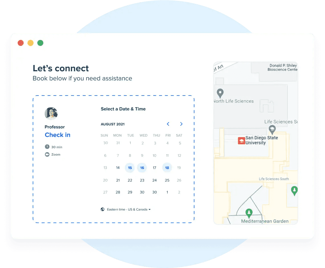 Las conexiones de calendario de Calendly permiten la programación moderna directamente desde su calendario conectando hasta seis calendarios comerciales y personales para automatizar la programación en función de la disponibilidad en tiempo real.